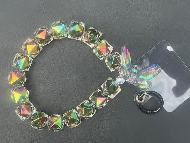 The Butterfly Bloom Cellphone Wristlet brings together soft shimmer and refined beauty for everyday wear. Faceted prism beads reflect light from every angle creating a radiant iridescent glow that stands out effortlessly. A delicate crystal butterfly accent adds a graceful and feminine touch to the design.