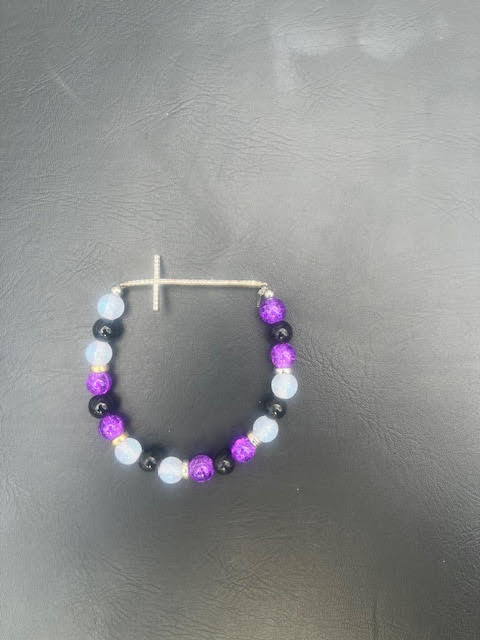 Meet the Rooted in Faith Bracelet. This beaded cross bracelet blends meaning with everyday style, featuring deep black beads, soft white tones, and vibrant purple accents. A subtle shimmer from the silver cross adds just the right touch of elegance. Lightweight and comfortable, it’s easy to wear on its own or layered with your favorites. Designed as a reminder of faith, strength, and light, always close at hand.